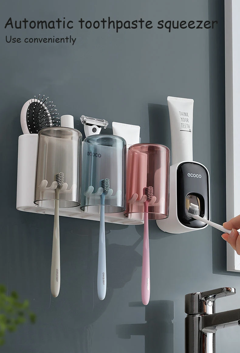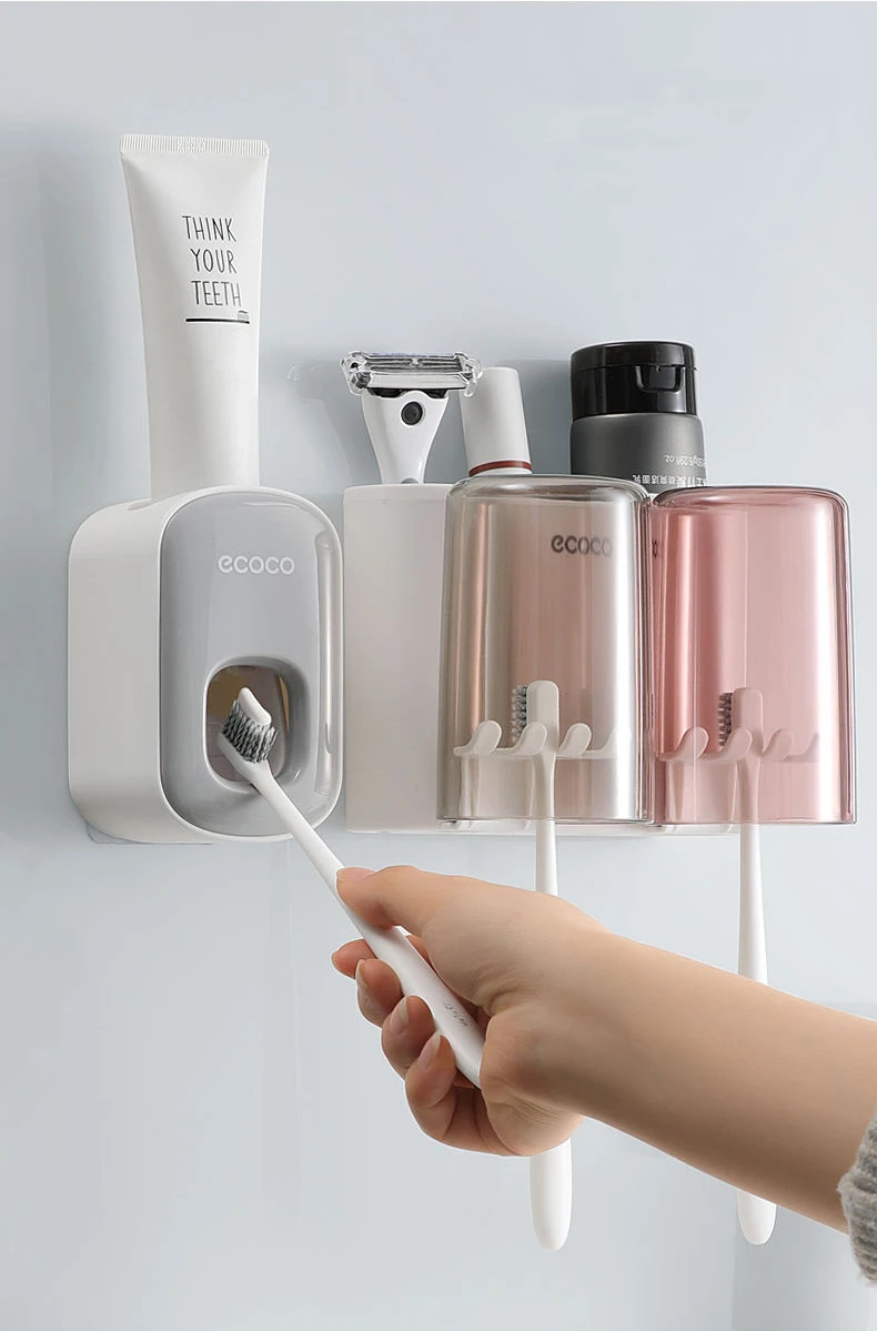 ECOCO toothbrush holder for organized bathroom with a cup of toothpaste