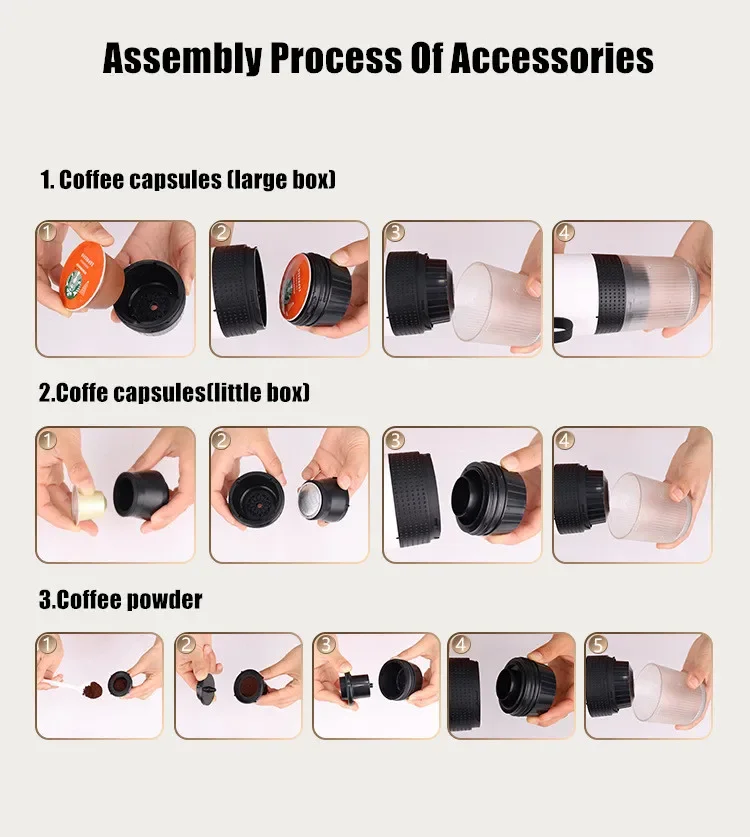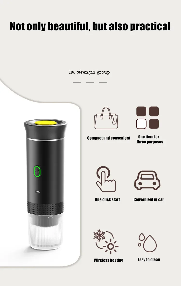 3 in 1 Electric Espresso Coffee Machine Portable Cordless Car Home Camping Coffee Maker Capsule Powder Travel Coffee Maker
