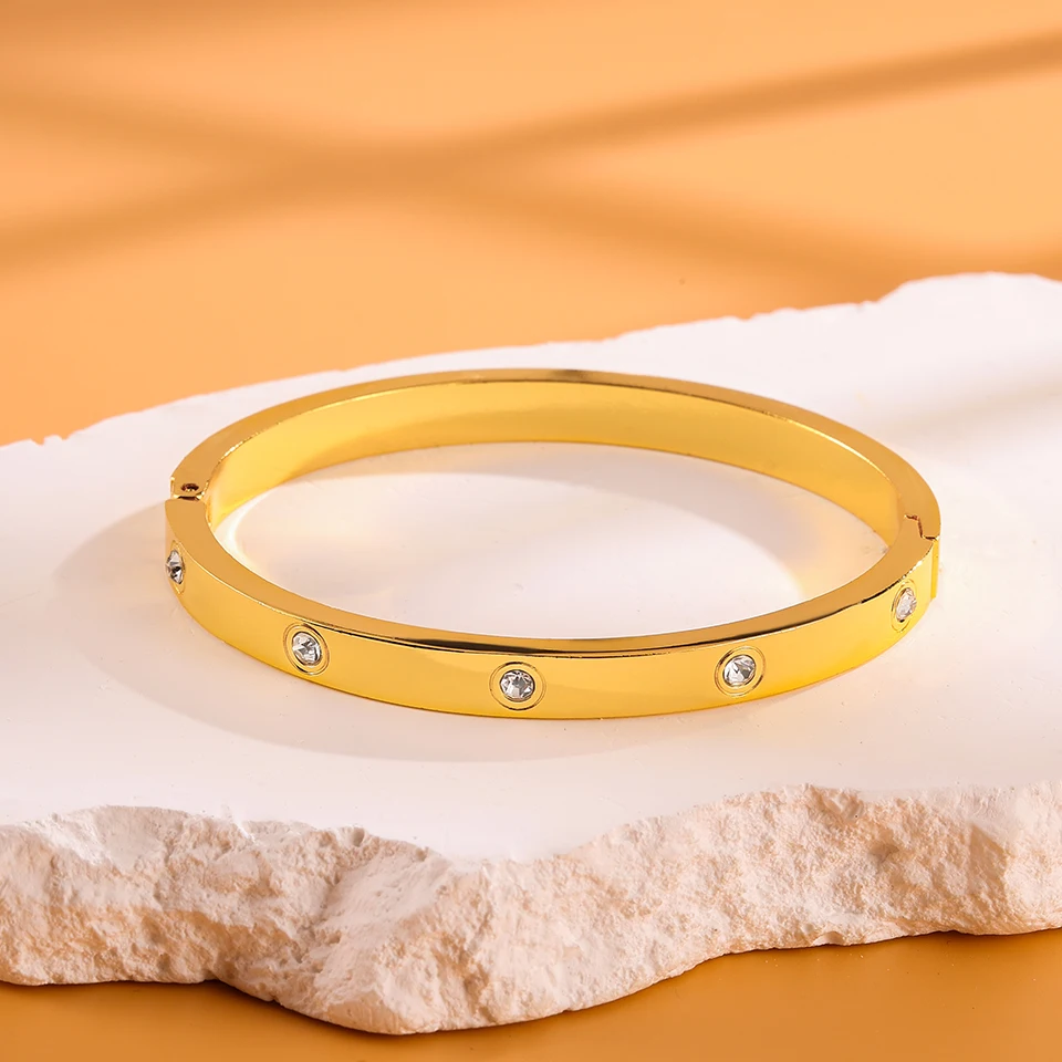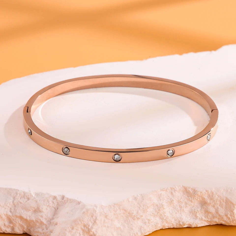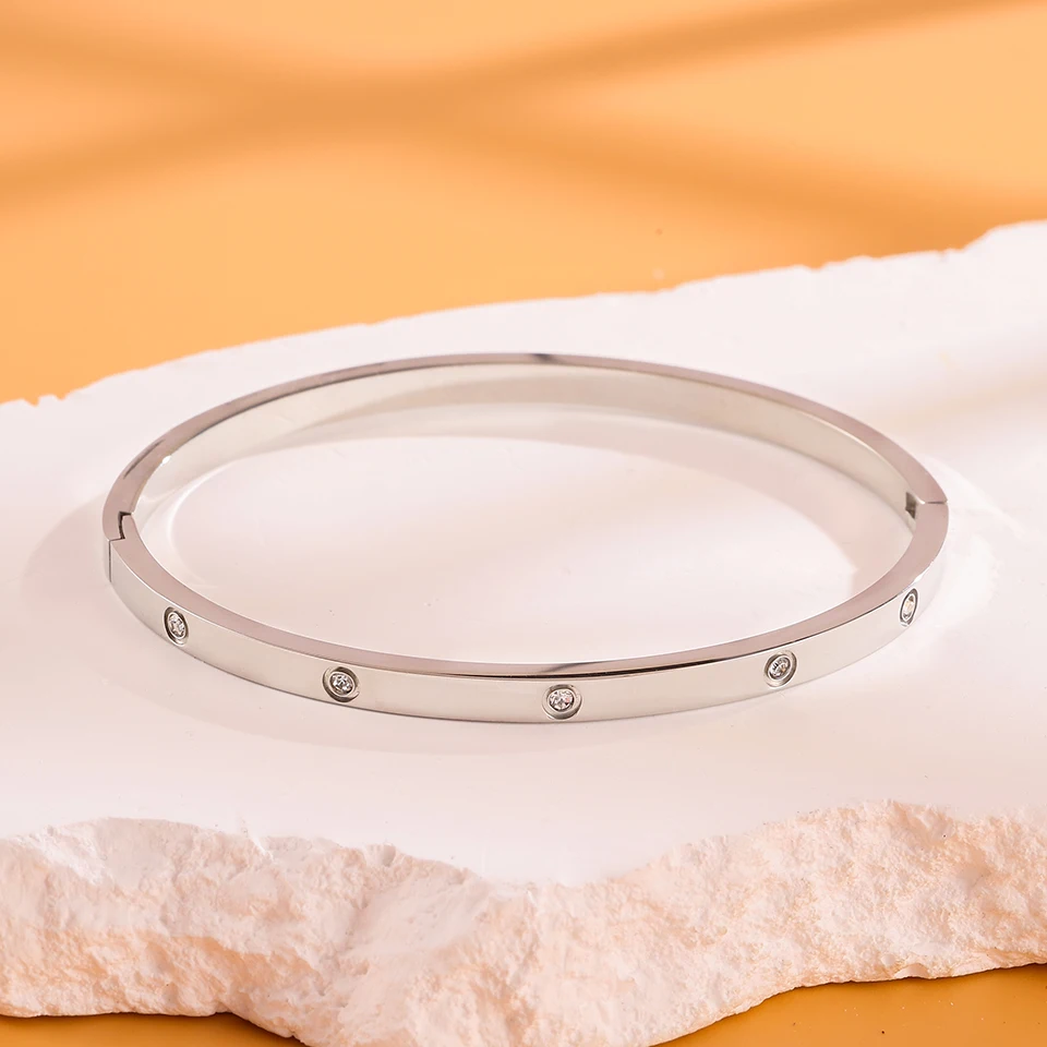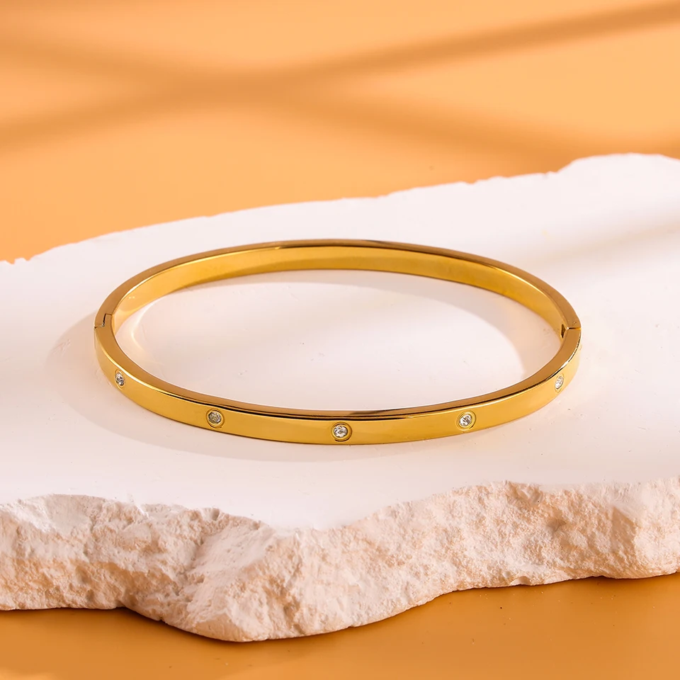 Minimalist stainless steel bracelet with round zircon inlay fashion jewelry accessory silver or gold for daily wear gifts