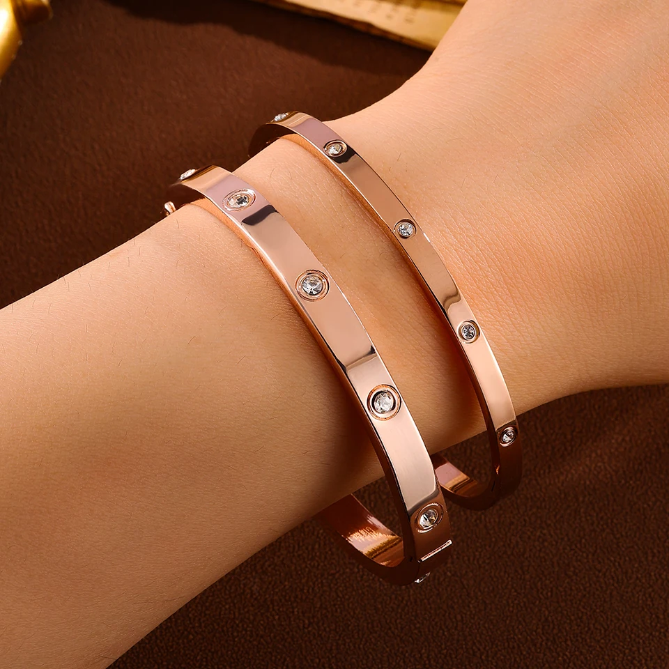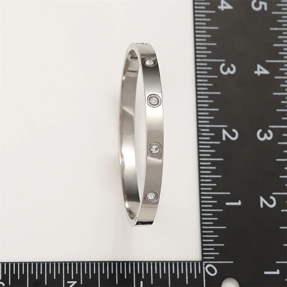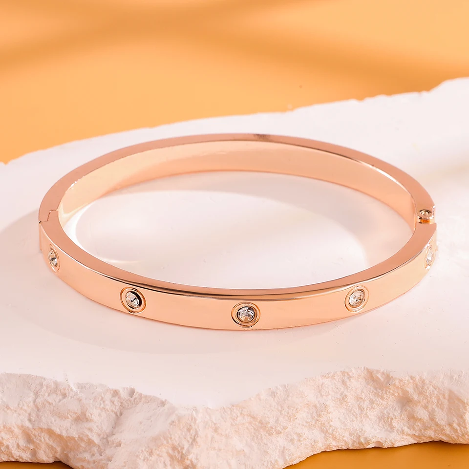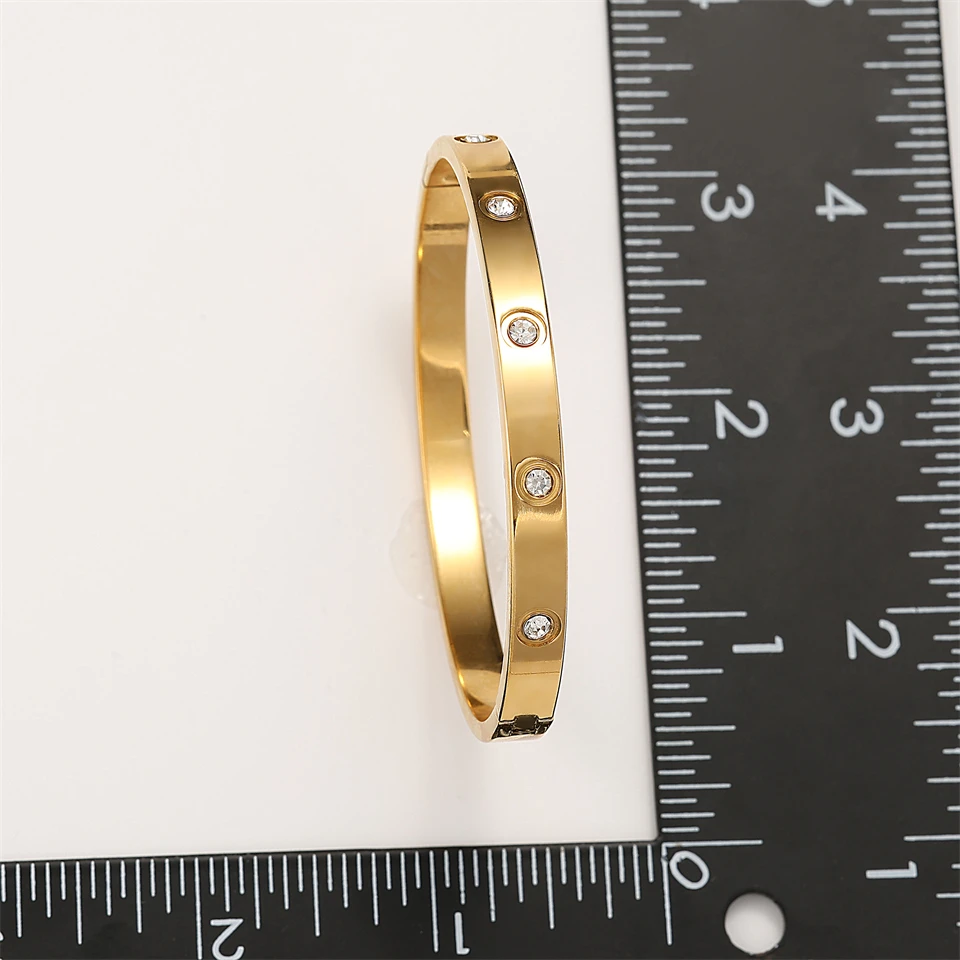 Minimalist stainless steel bracelet with round zircon inlay fashion jewelry accessory silver or gold for daily wear gifts