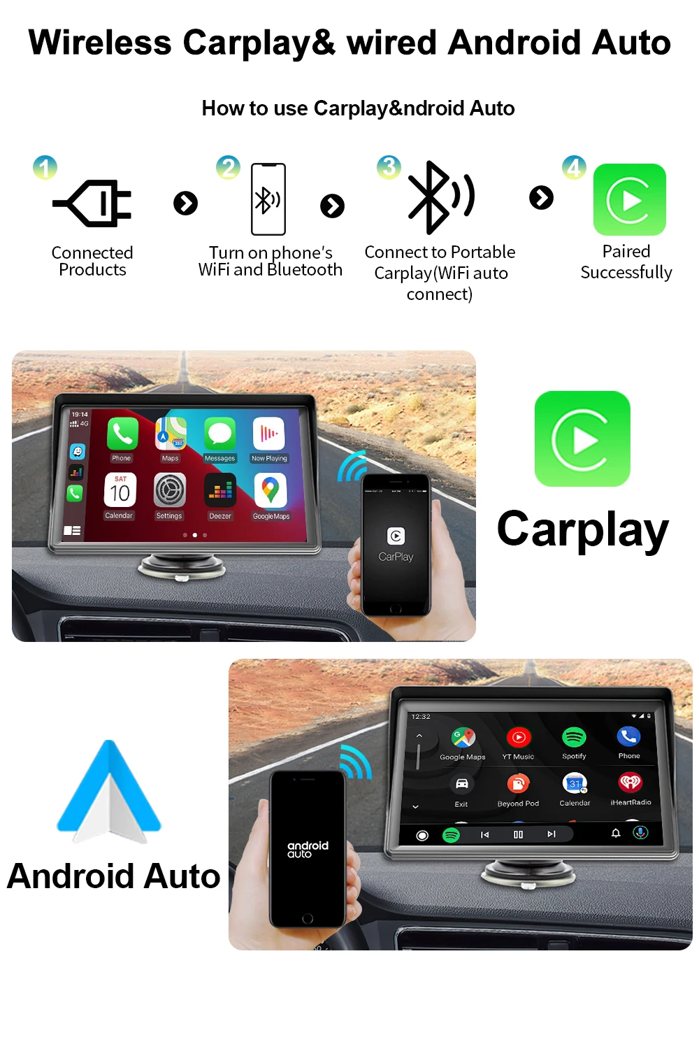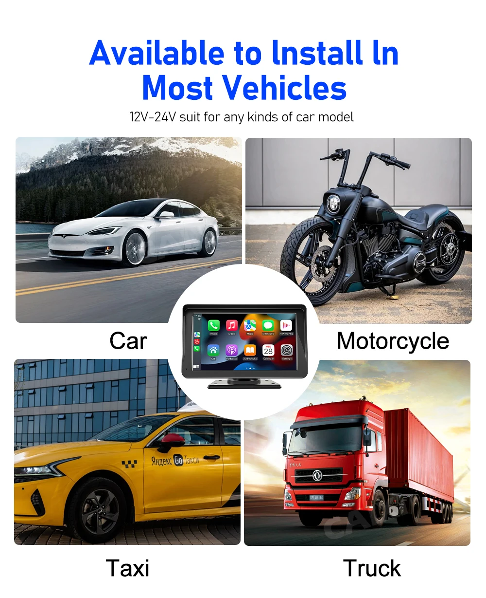 【Universal Compatibility】 Our CarPlay screen is compatible with all vehicles. With this device, you can enjoy features like YouTube, podcasts, messaging, Google Maps, navigation, Spotify, Apple Music, and Bluetooth calls, making it the perfect hands-free device. It seamlessly integrates with cars, SUVs, trucks, RVs, vans, and buses, and works in harmony with your vehicle's existing radio system.