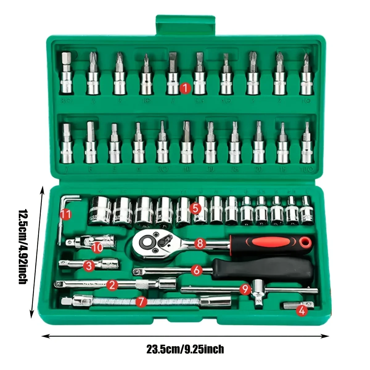 46pcs Family Tools 1/4 Inch Ratchet Wrench Mechanic Tool Set for Home Auto Repair with Metric Sockets Hex Bit Socket Set