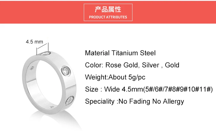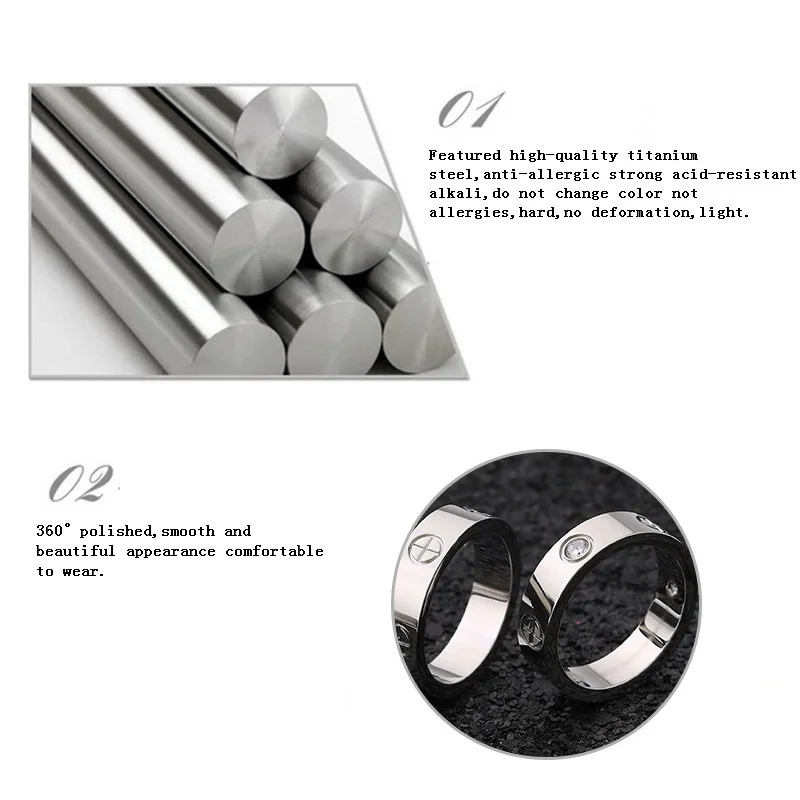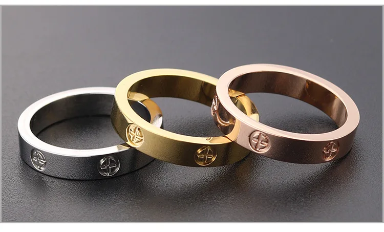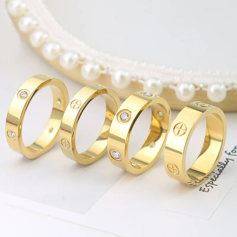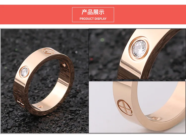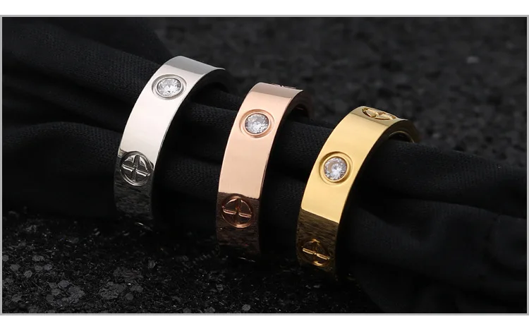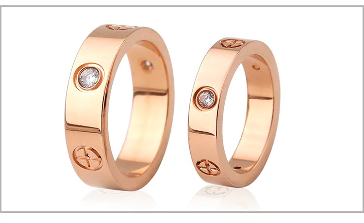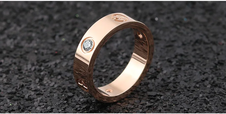 A modern stainless steel ring in gold and pink love ring for women and men, a luxurious CZC Crystal and Jewelery Free Bridal Jewelery